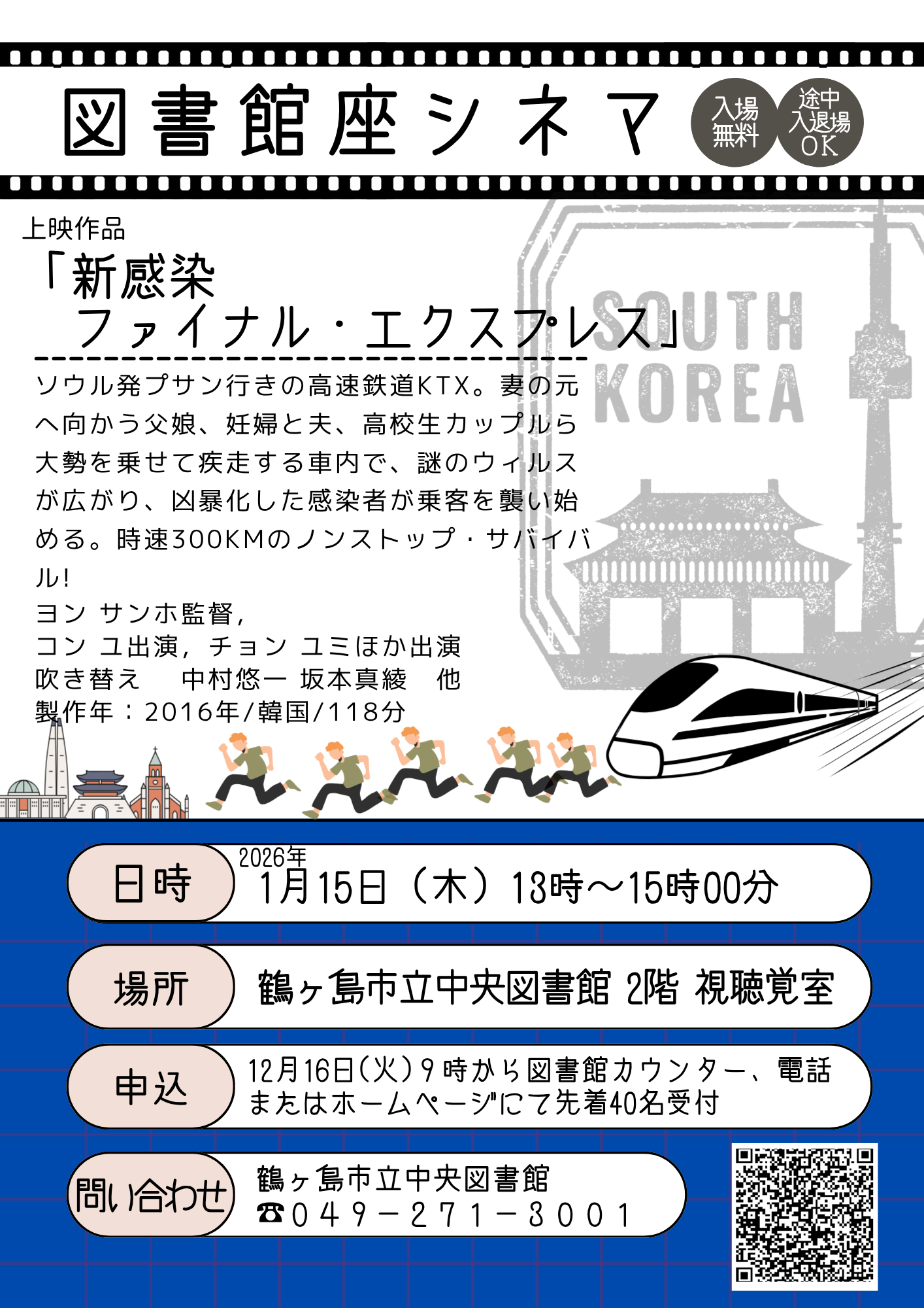 | 場所 | 鶴ヶ島市立中央図書館2階 視聴覚室 |