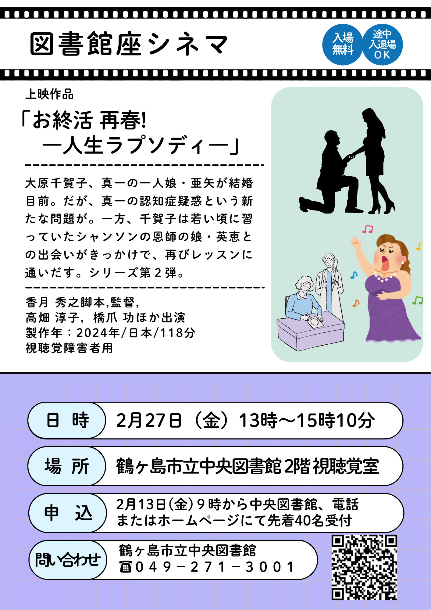 | 場所 | 鶴ヶ島市立中央図書館2階 視聴覚室 |